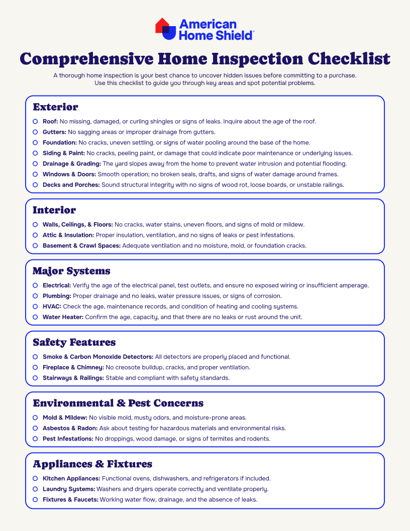 Download our free Comprehensive Home Inspection checklist today to make sure you’re thoroughly examining your prospective home.